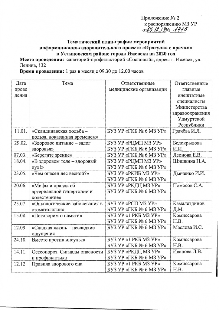 2. Санаторий «Сосновый» по адресу: г. Ижевск, ул. Ленина, 132 - 1 раз в месяц по графику. Сбор в холле санатория в 9.30 часов.