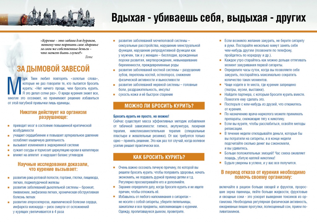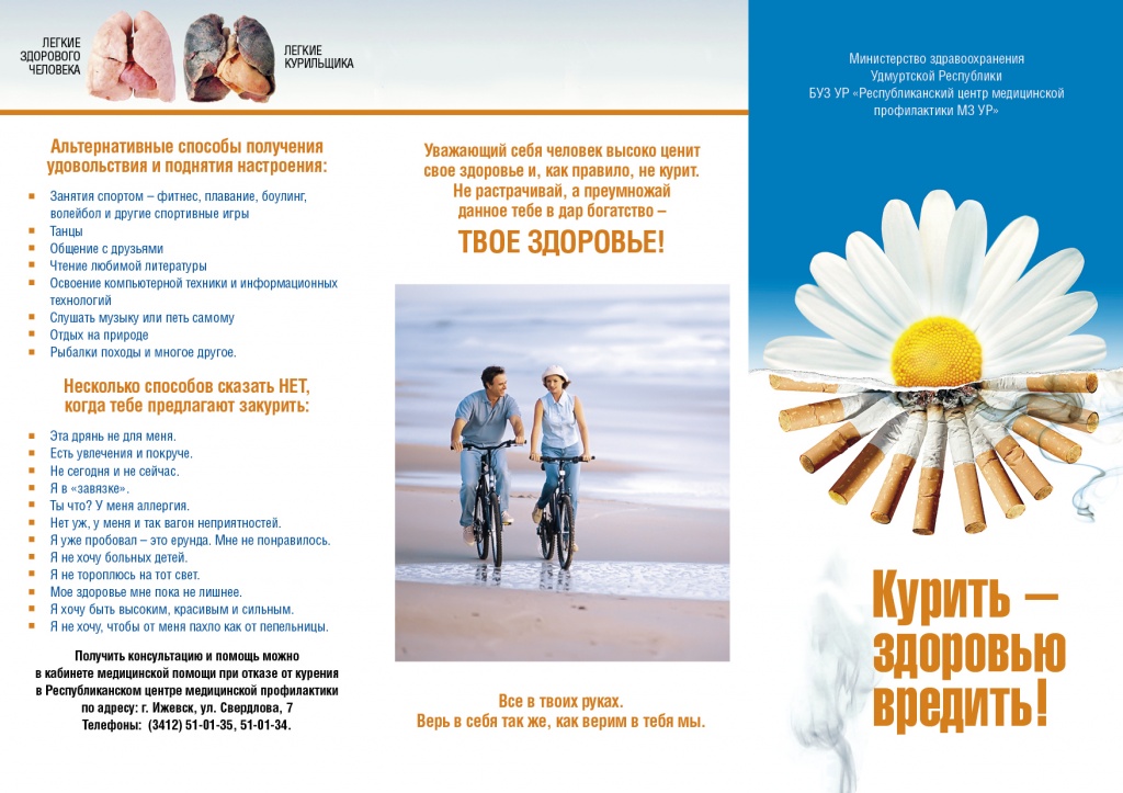 Курить - здоровью вредить Полноцветный буклет Лицевая сторона (.jpg) Оборотная сторона (.jpg) |
